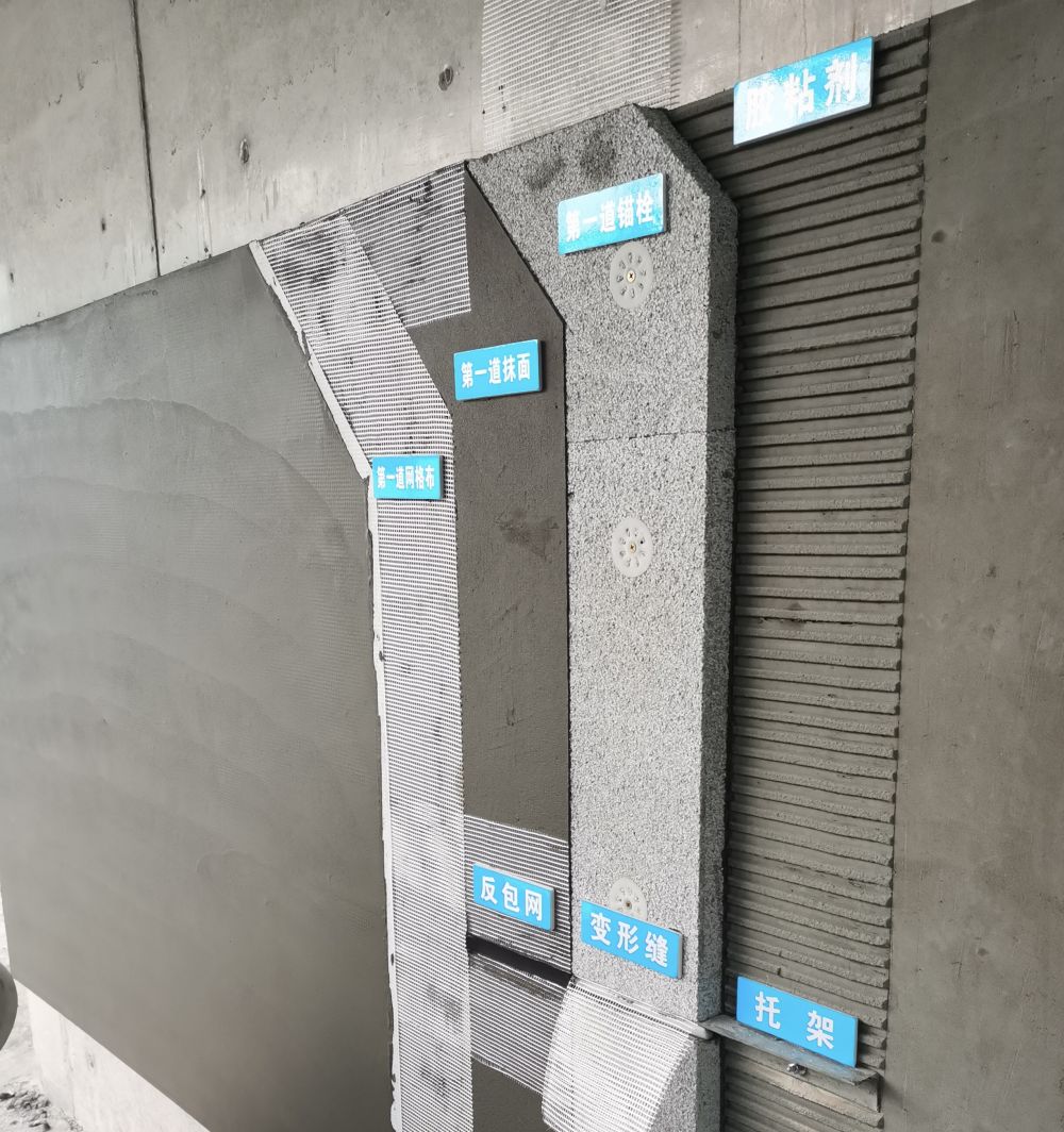 3 、應設置標示牌逐層解剖展示外墻保溫系統個構造層材料種類。