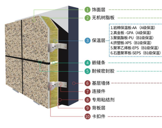 薄陶瓷保溫裝飾一體板的系統(tǒng)特性優(yōu)異明顯,薄陶瓷保溫裝飾一體板是由薄陶瓷面板、保溫層、膠粘劑、底襯組成,是一種新型模塊化復(fù)合建筑材料,整個系統(tǒng)由保溫裝飾復(fù)合板→合金錨扣件→粘結(jié)系統(tǒng)→封閉防水系統(tǒng)→排氣系統(tǒng)組成。系統(tǒng)集“保溫隔熱、防火防水、裝飾美觀、施工便捷、安全綠色”為一體。是極具性價比和明顯優(yōu)勢的高檔外墻保溫裝飾材料。