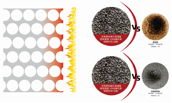 無(wú)機(jī)塑化微孔保溫板耐火極限超過(guò)3小時(shí),過(guò)火后不粉化,整體性保持良好。